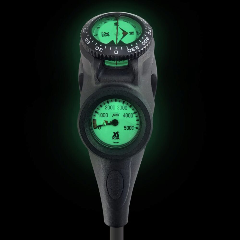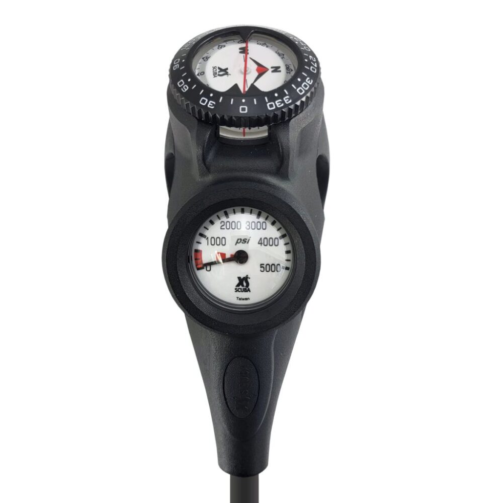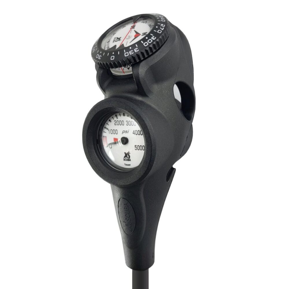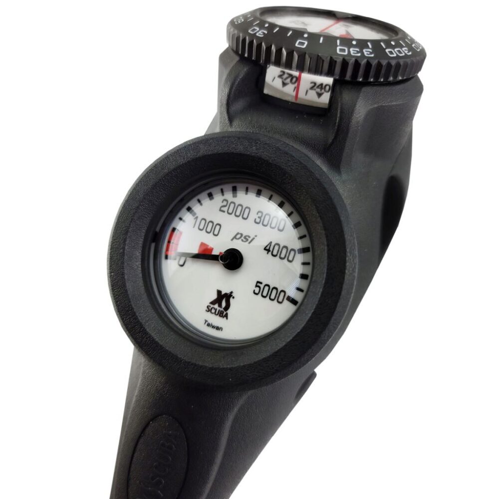 - The front side has a pressure gauge and a compass. The reverse side has a depth gauge
